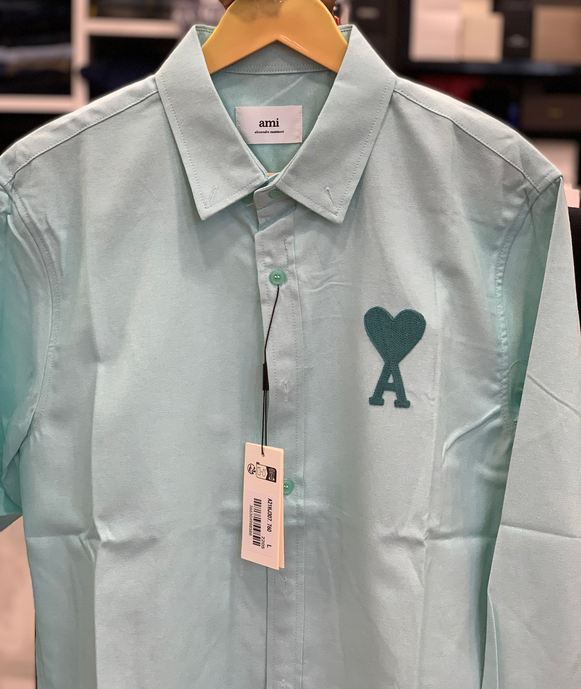 AMI SEA GREEN SHIRT WITH EMBROIDERED LOGO